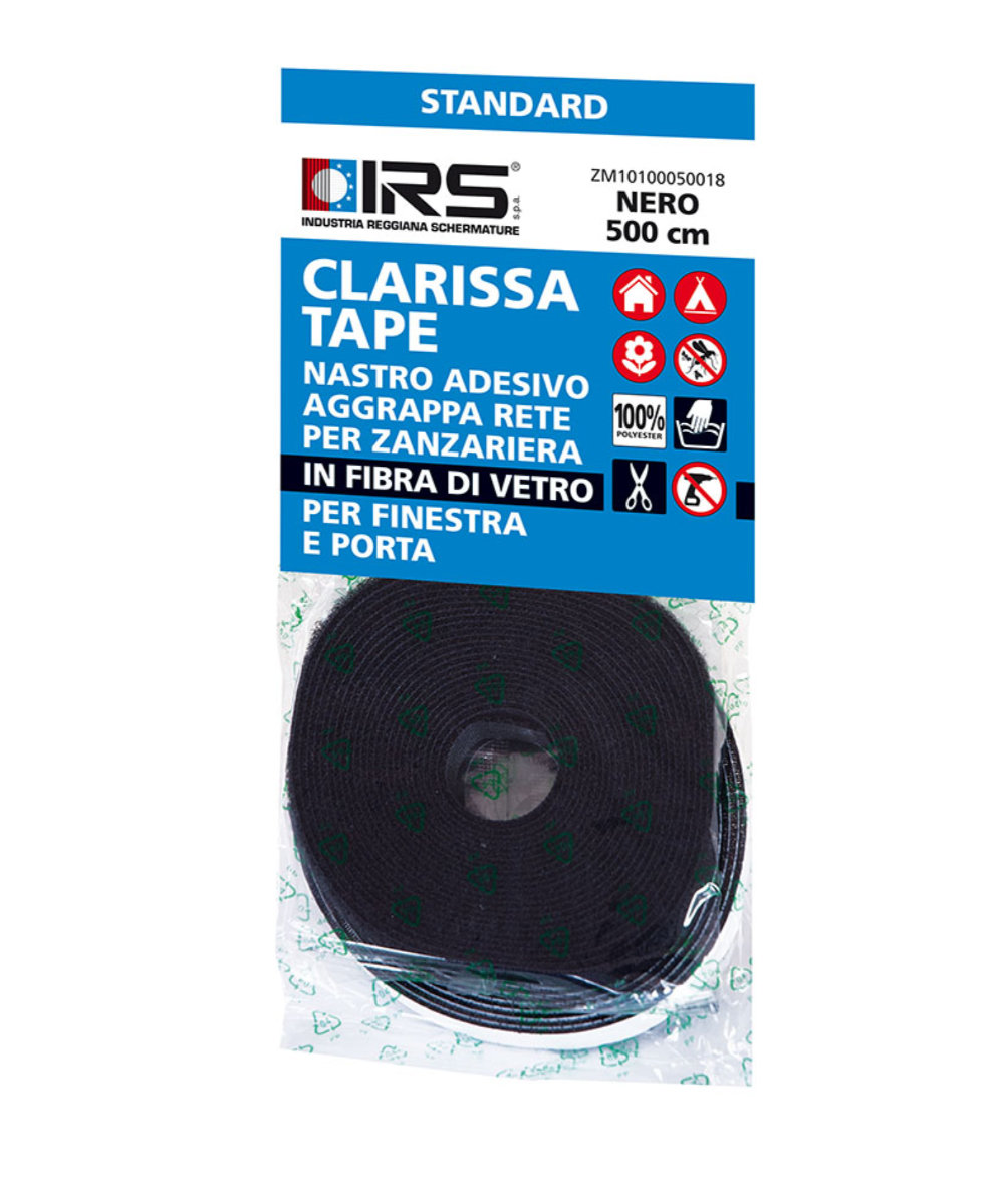 IRS Clarissa Tape 500 cm nero, un complemento essenziale per assicurare la perfetta tenuta delle zanzariere senza comprometterne l'estetica. Grazie alla sua facile applicazione e alla resistenza, questo nastro adesivo in velcro offre una soluzione pratica e duratura per tutte le tue esigenze di protezione dagli insetti.