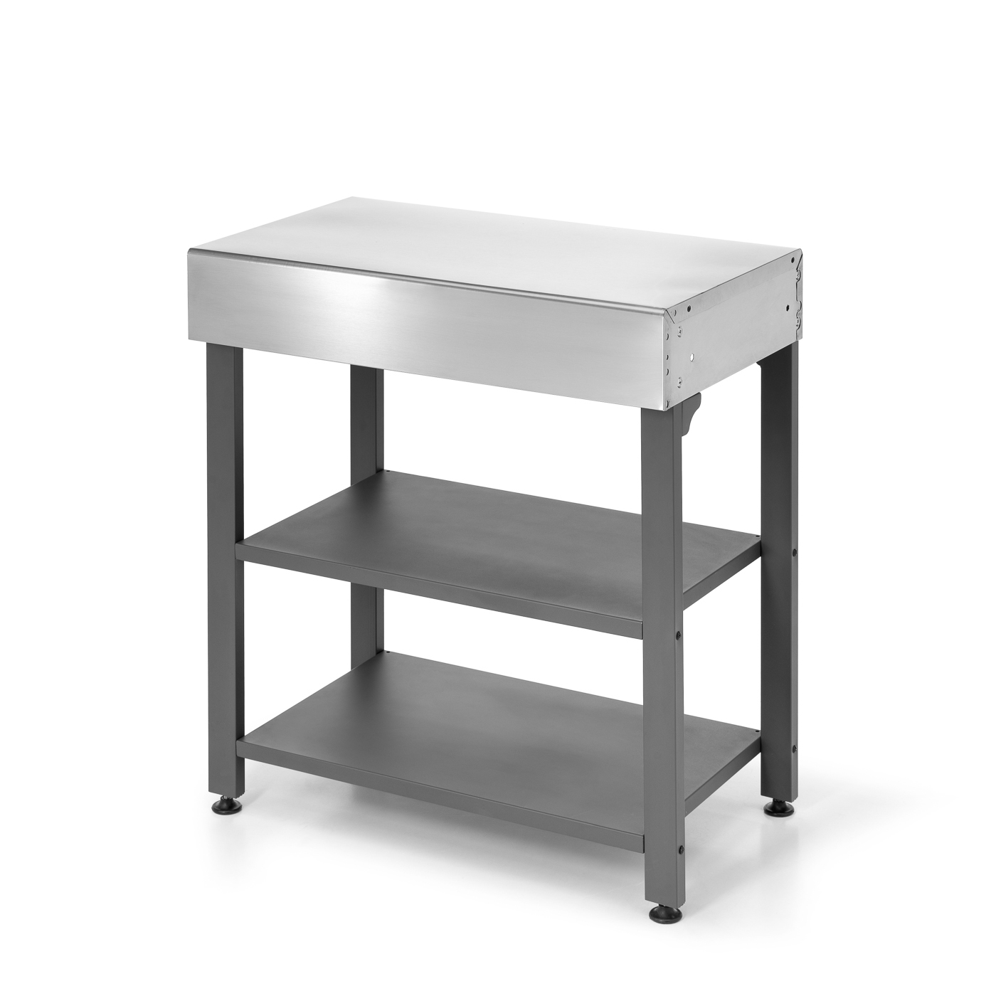 Struttura e Ripiani: Il telaio e i due ampi ripiani inferiori sono in acciaio verniciato di colore grigio scuro/antracite, che conferisce solidità e una lunga durata nel tempo, proteggendo il modulo dagli agenti atmosferici.