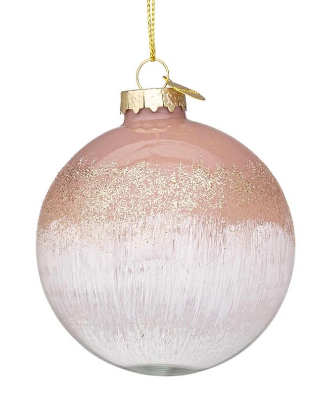 PALLINA DI NATALE IN VETRO - ROSA E BIANCO - ø8 CM - SINGOLA