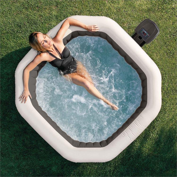 offre il massimo del comfort con un semplice tocco. La sua forma ottagonale e il colore elegante aggiungono un tocco di esclusività al tuo spazio esterno. Grazie al pannello touch di facile utilizzo, puoi attivare i 120 getti di bolle ad alta performance che circondano la vasca, offrendo un massaggio rinvigorente. Con una capacità fino a quattro persone, è perfetta per condividere momenti di benessere con amici e familiari.