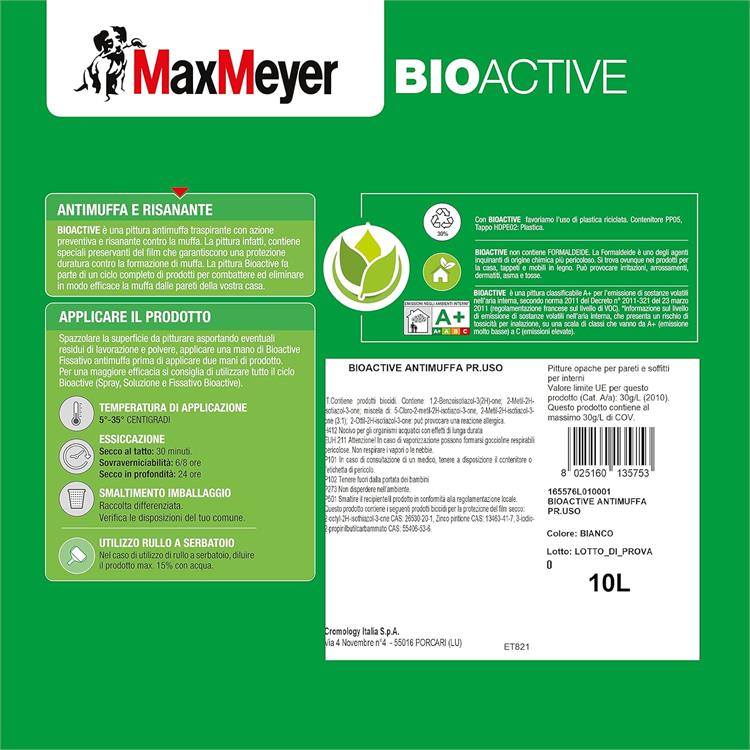 PITTURA ANTIMUFFA TRASPIRANTE BIOACTIVE A+ 10LT - MAXMEYER