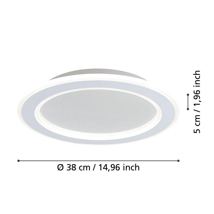 Design rotondo ed elegante per spazi morbidi. Con un diametro di 380 mm e un'altezza di 50 mm, questa plafoniera a LED offre una soluzione compatta e versatile dal design elegante ed è ideale per soggiorni, sale da pranzo o altri spazi abitativi dove si desidera un'illuminazione variabile.