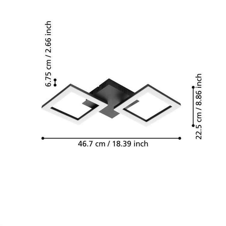 La plafoniera LED moderne PARANDAY-Z di Eglo è un gioiello di design e tecnologia che rivoluziona l'illuminazione per interni dei tuoi ambienti. Realizzata in metallo nero, questa plafoniera si distingue per la sua forma squadrata e i due pannelli luminosi orientabili, che permettono di personalizzare l'aspetto della luce in base alle tue esigenze. Il design semplice la rende una plafoniera a led moderna ideale per la casa e perfetta in cucina, corridoio o studio.