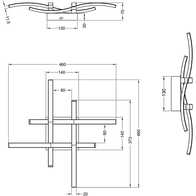 PLAFONIERA ROUTE LED 4 BACCHETTE ONDULATE BIANCA 45,2CMX45,2CM