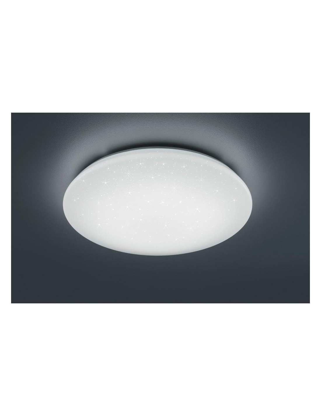 Fuji plafoniera led diffusore metacrilato bianco effetto cielo stellato con telecomando con funzioni di variazione luce calda e fredda, regolazione intensita' di luce e luce notturna d.74cmColore: BiancoMateriale: PlasticaMontaggio a soffittoGrado di protezione IP20Potenza 40WLumen 3800Colore della luce 3000-5500KTensione 230VCiclo di vita 30000hDimensioni diametro 74x10cm2watt