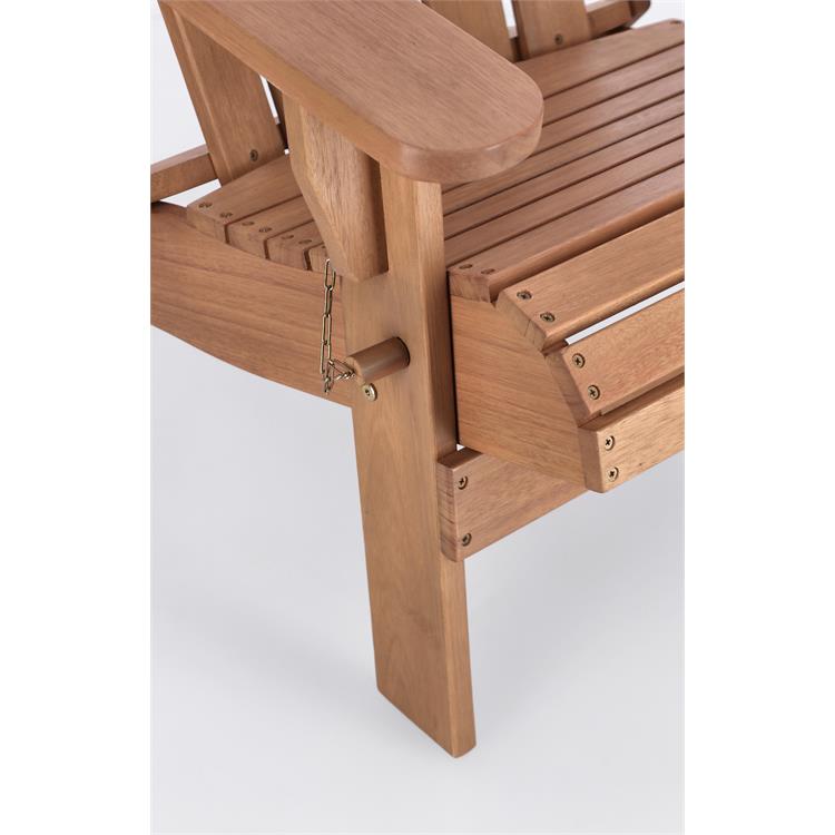 La struttura della poltrona da giardino è realizzata in legno di acacia, materiale pregiato e altamente resistente, trattato con finitura ad olio per esaltarne le venature naturali e proteggerlo dagli agenti atmosferici. La viteria in acciaio galvanizzato garantisce solidità e durabilità eccezionali, assicurando che la tua sedia da giardino in legno mantenga la sua bellezza e funzionalità nel tempo.