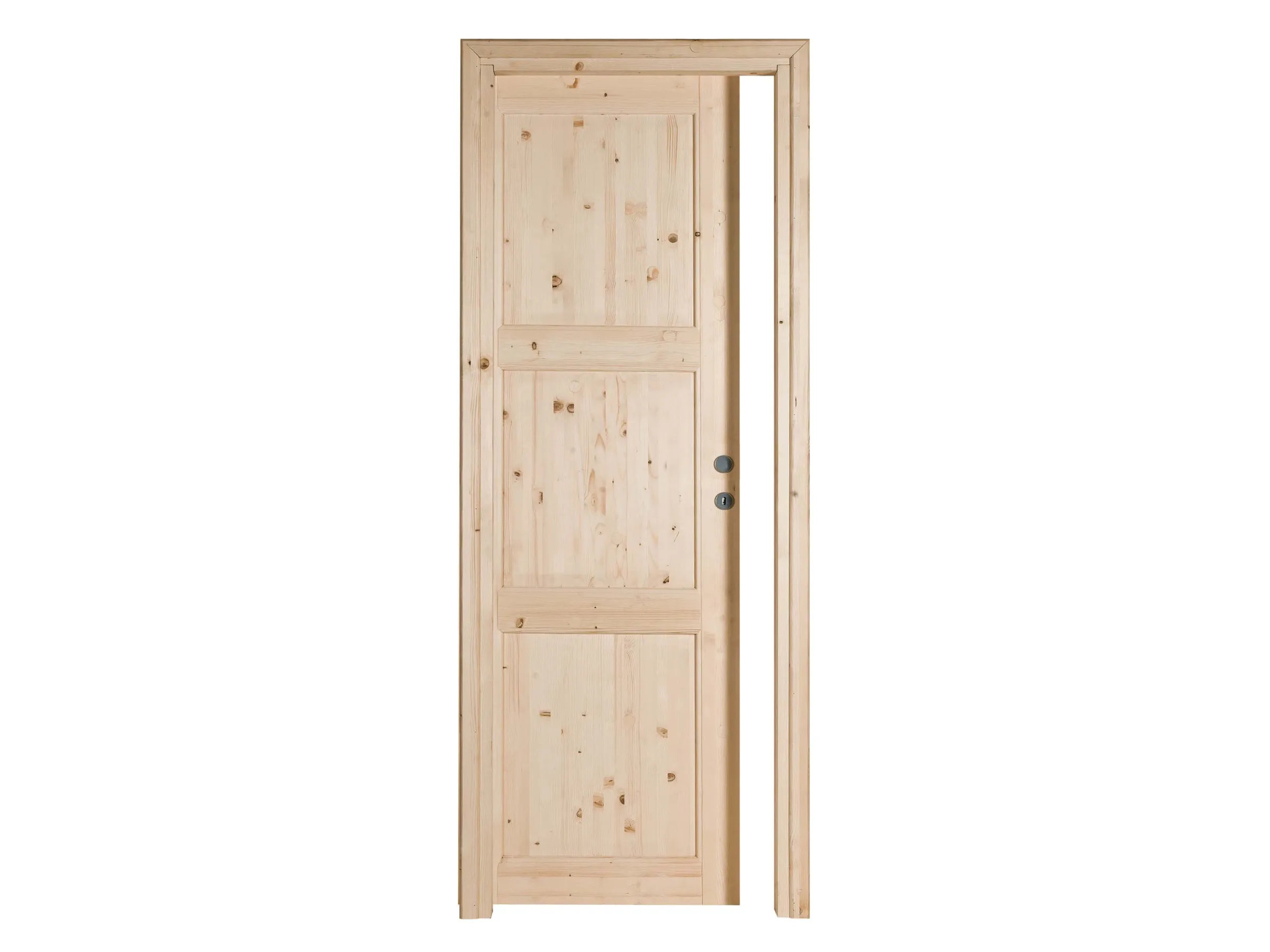 Realizzata con pannelli in legno massello di abete lamellare, questa porta si distingue per la sua solidità strutturale e per il calore naturale che è in grado di conferire a qualsiasi ambiente domestico. La scelta di una porta in abete grezzo non è solo una decisione funzionale, ma una vera e propria dichiarazione di stile: la superficie naturale permette di apprezzare le venature autentiche del legno e offre la base ideale per qualsiasi tipo di personalizzazione.