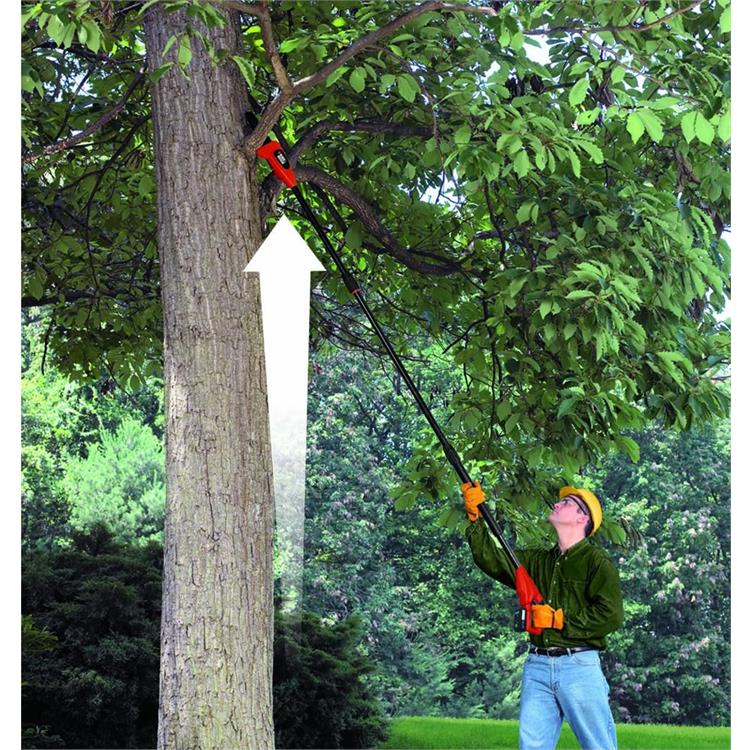 Il potatore a batteria di Black & Decker è progettato per garantire la massima sicurezza e controllo, con impugnatura antiscivolo che offre stabilità durante l’uso. Dotato di asta telescopica consente di raggiungere i rami più alti.