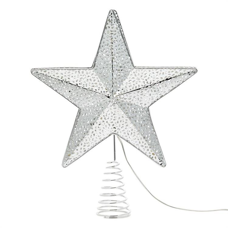 Rendi il tuo albero di Natale ancora più magico con il puntale stella Ø25 cm dotato di 23 microLED a luce fissa bianco caldo. Realizzato in metallo traforato color argento, questo puntale regala un effetto luminoso unico grazie ai piccoli fori che diffondono la luce creando un’atmosfera calda e accogliente.