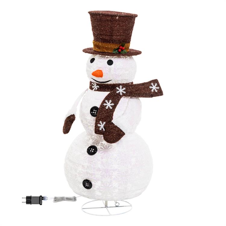 PUPAZZO DI NEVE LUMINOSO 3D H90 CM - RIPIEGABILE SALVASPAZIO - 90 LED SERIE FFB BIANCO