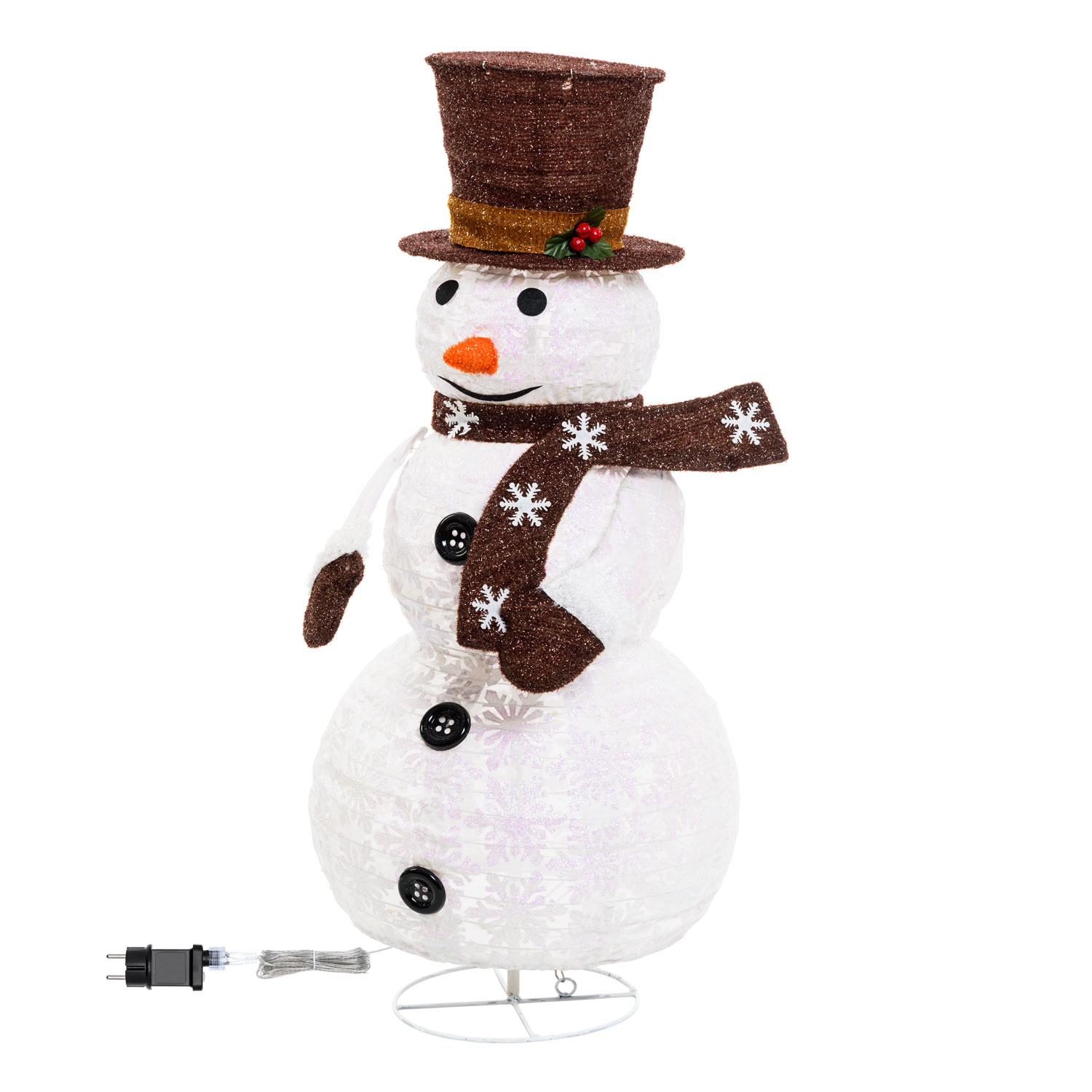 Porta un tocco di pura magia invernale nel tuo giardino o nel tuo balcone con questo splendido pupazzo di neve luminoso 3D. Alto 90 cm, l'allegro pupazzo di neve natalizio crea immediatamente una gioiosa atmosfera festiva in tutta la casa.