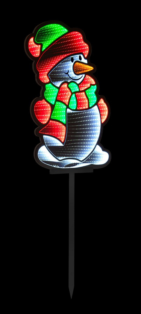 Il pupazzo di neve è realizzato con una struttura robusta e resistente, perfetta per affrontare il clima esterno. L'intera figura è animata da ben 380 LED multicolor, creando un effetto visivo accattivante.