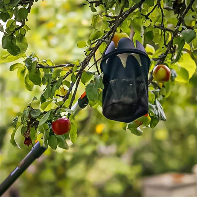 Questo ingegnoso raccoglitore di frutta è progettato per raccogliere delicatamente e facilmente la frutta senza fatica e senza danneggiarla. Con un'ottima apertura del cestello, permette di raccogliere la frutta tramite i bordi in Fibercomp™ appositamente studiati per staccare delicatamente ogni frutto dal ramo con un semplice gesto.