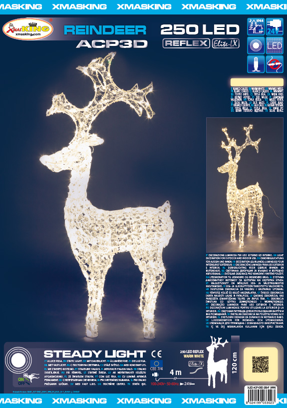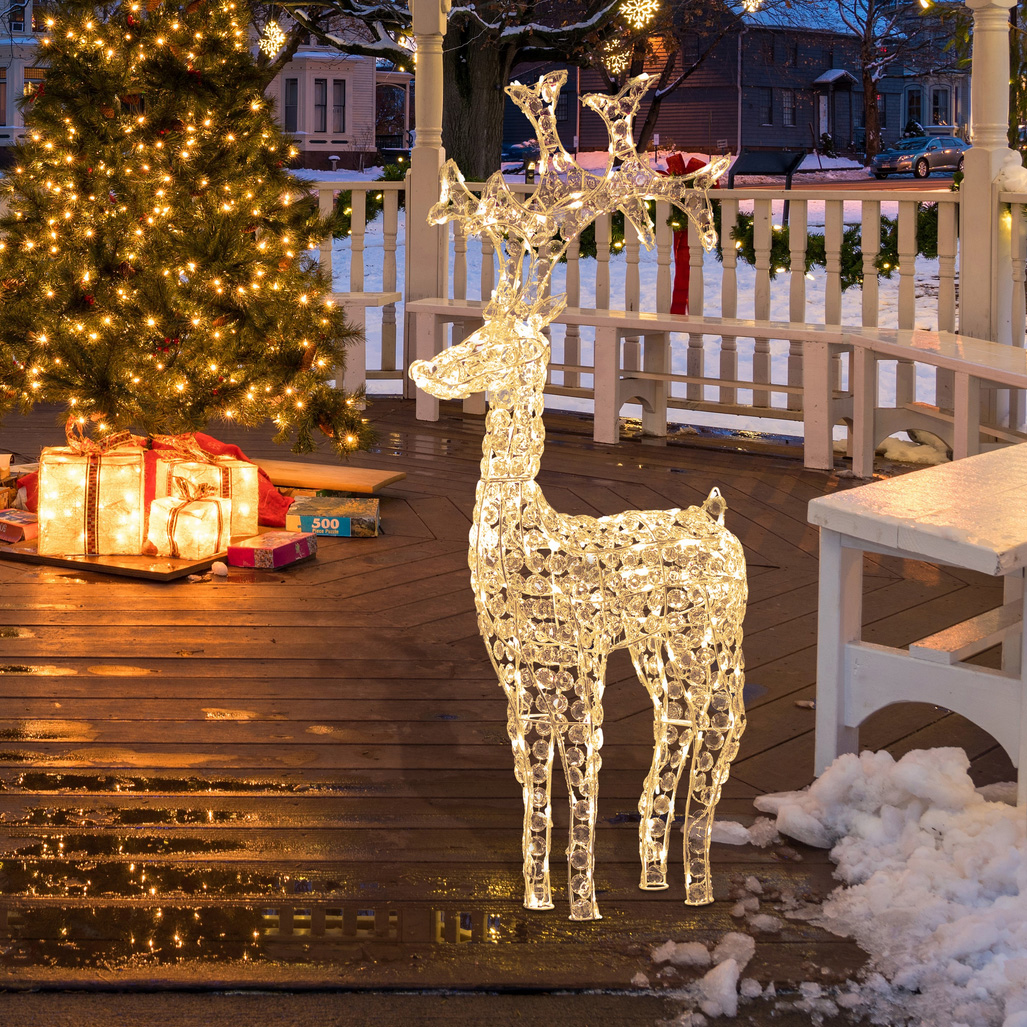 Questa renna natalizia 3D aggiunge una ventata di magia alle tue decorazioni di Natale! Realizzata con cristalli in acrilico e illuminata da 250 LED bianchi a luce fissa, questa splendida decorazione è il complemento perfetto per il tuo giardino o per gli interni della tua casa!