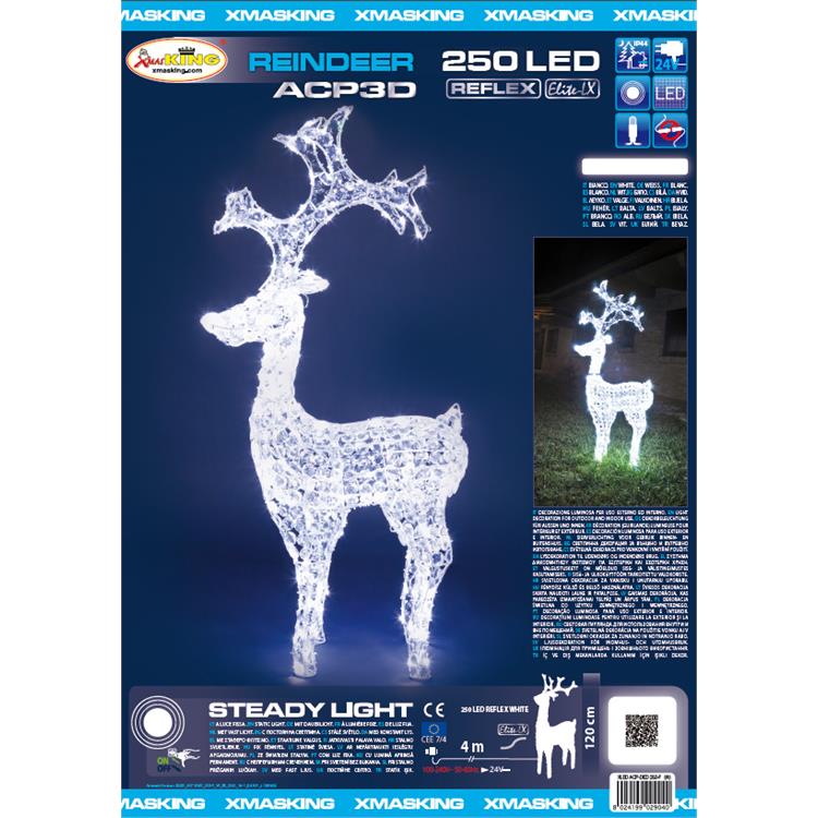 RENNA NATALIZIA LUMINOSA 3D H120CM CON CRISTALLI IN ACRILICO - LUCE BIANCO FREDDO