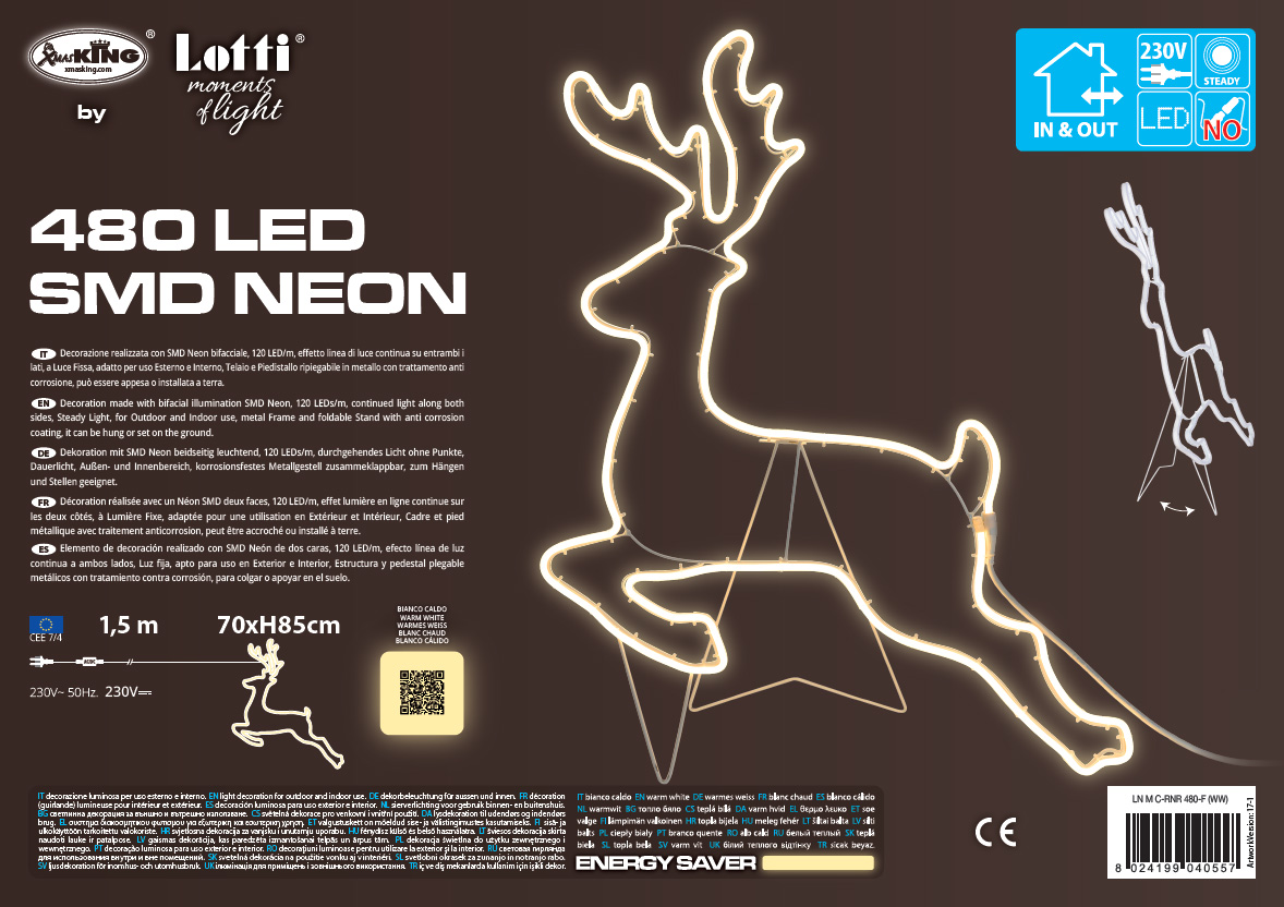RENNA NATALIZIA LUMINOSA GALOPPANTE 2D - C SMD NEON 480 LED H85CM