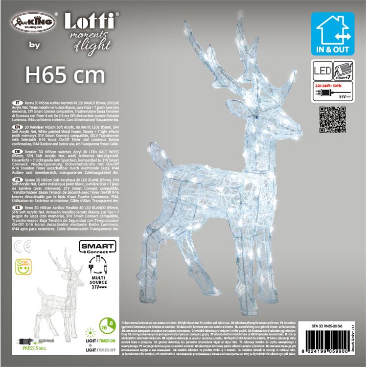 RENNA NATALIZIA LUMINOSA 3D 65CM - LUCE BIANCO FREDDO