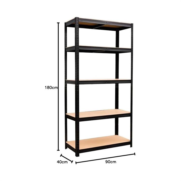 SCAFFALE IN METALLO E LEGNO MDF - 5 RIPIANI - 90x40 x H180 CM - NERO