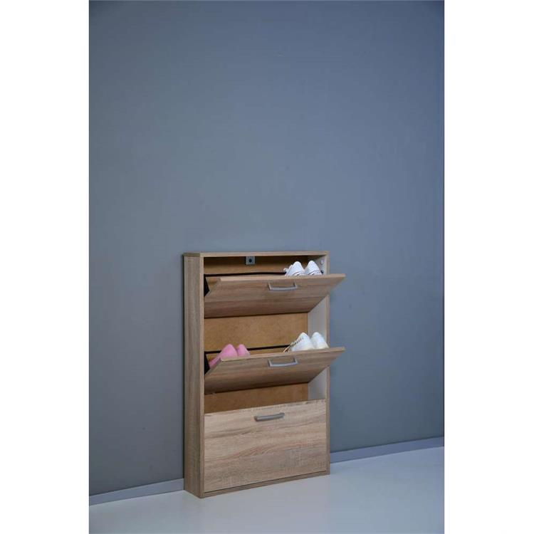 Lo spessore del pannello da 16 mm garantisce una solida struttura. Le 3 ribalte singole permettono di accedere facilmente a tutte le tue scarpe, mantenendole ordinate e protette dalla polvere. Le dimensioni compatte (15 x 65 x 100h cm) la rendono perfetta anche per spazi ristretti, senza rinunciare alla capacità per una scarpiera moderna, versatile e funzionale che ti aiuterà a tenere in ordine le tue calzature e a valorizzare il tuo spazio.