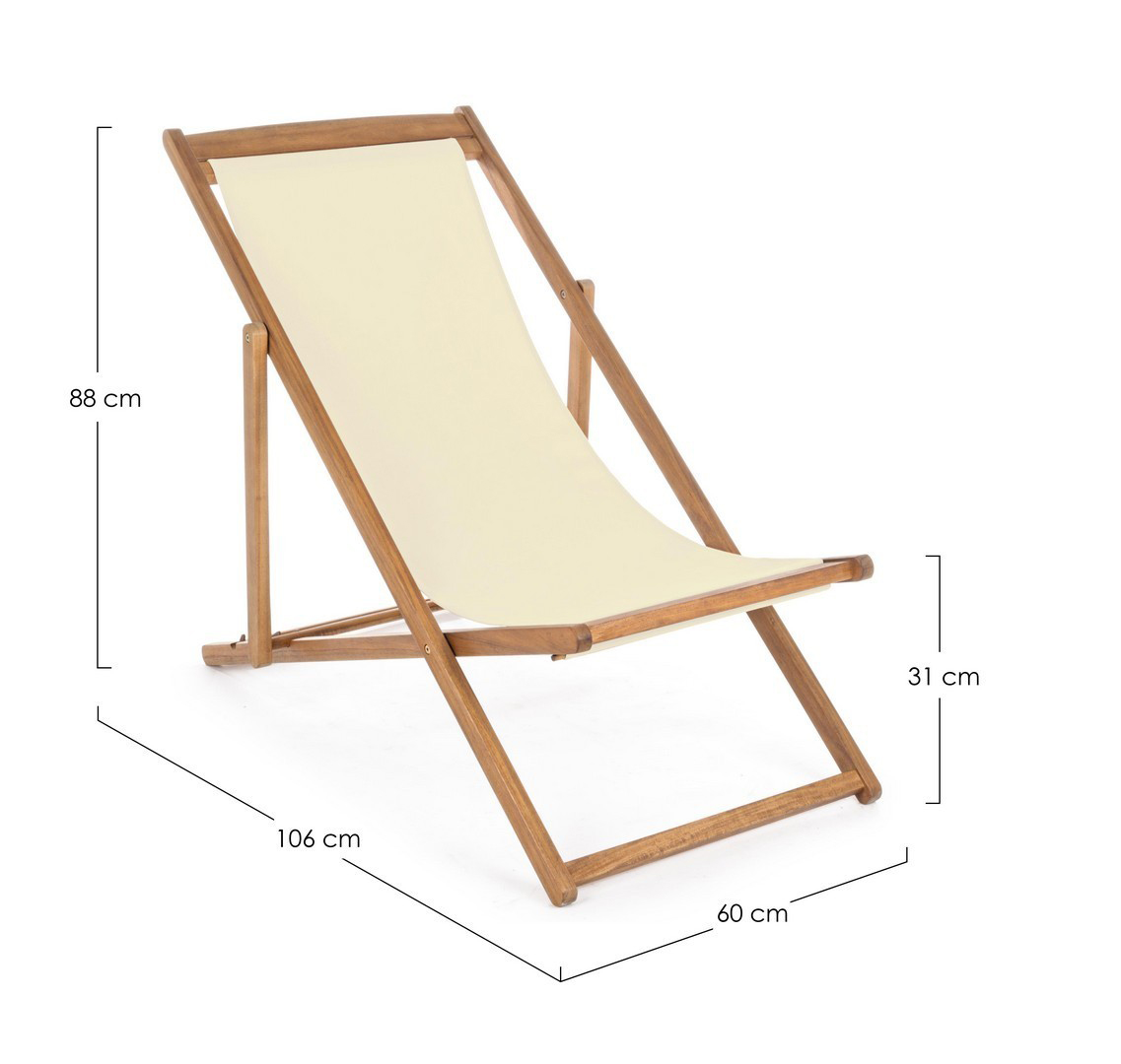 sedia a sdraio in legno Bizzotto Relax Noemi ecru. Realizzata con materiali di alta qualità come il legno di acacia e l'acciaio galvanizzato, questa sdraio unisce resistenza e stile.