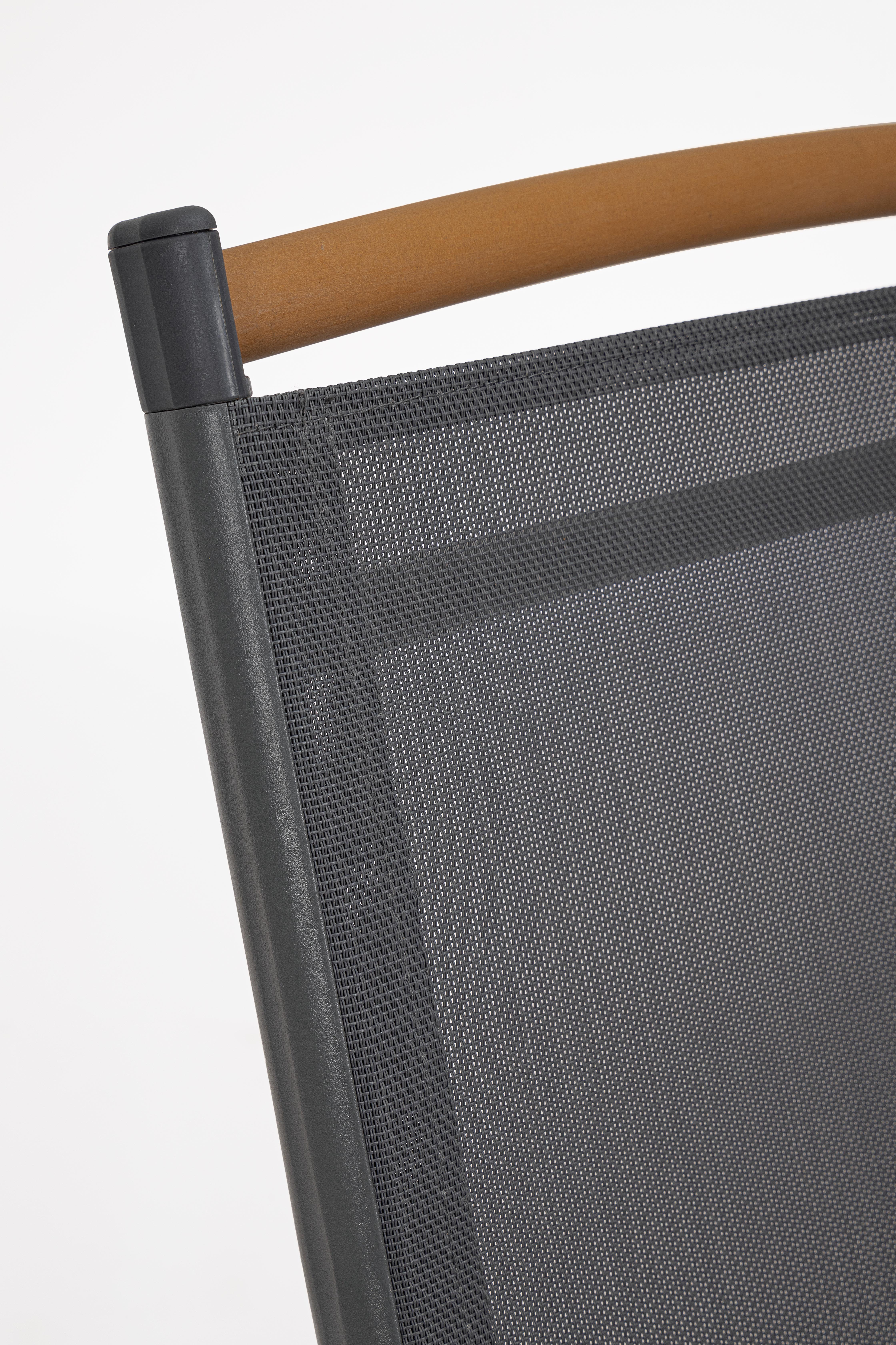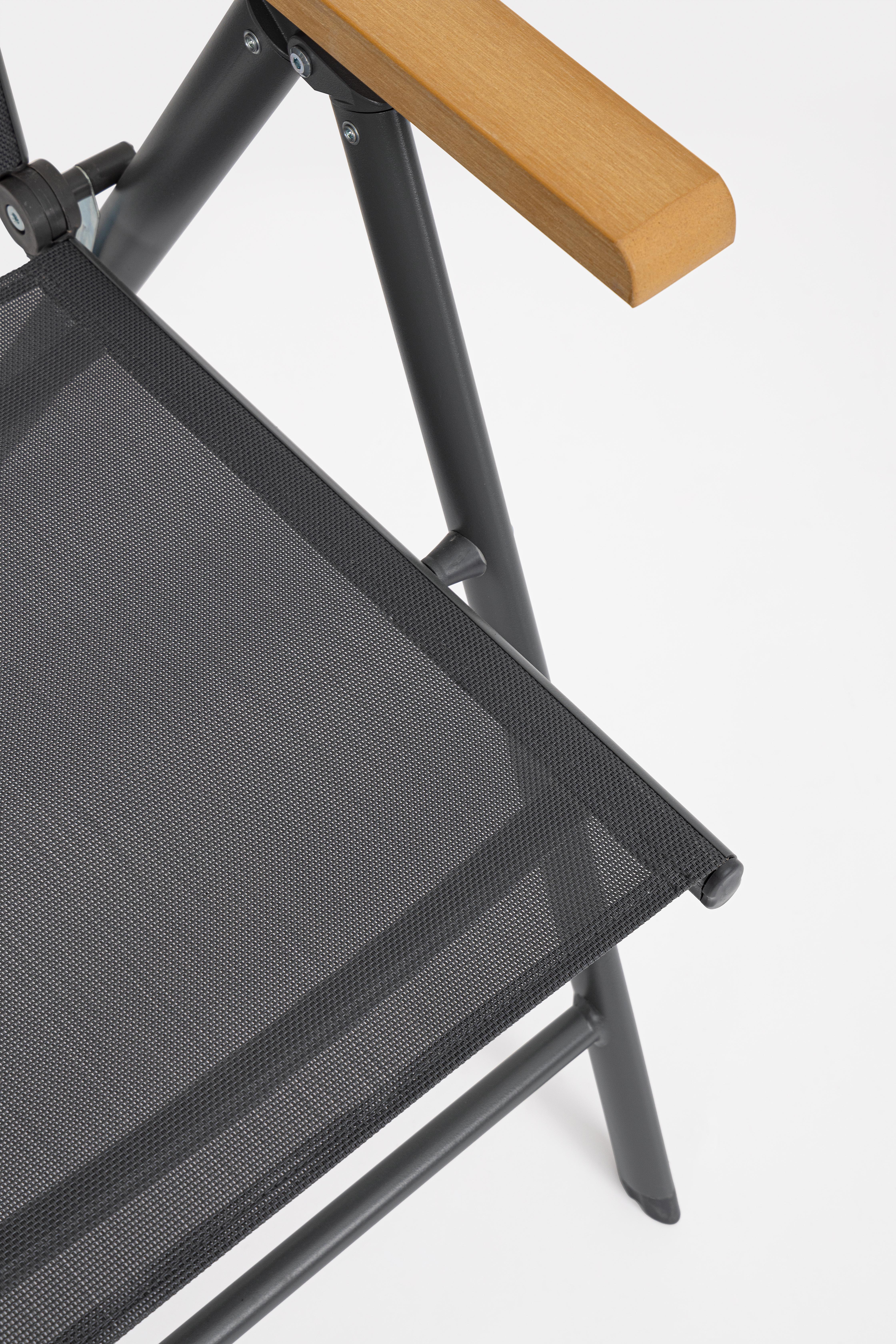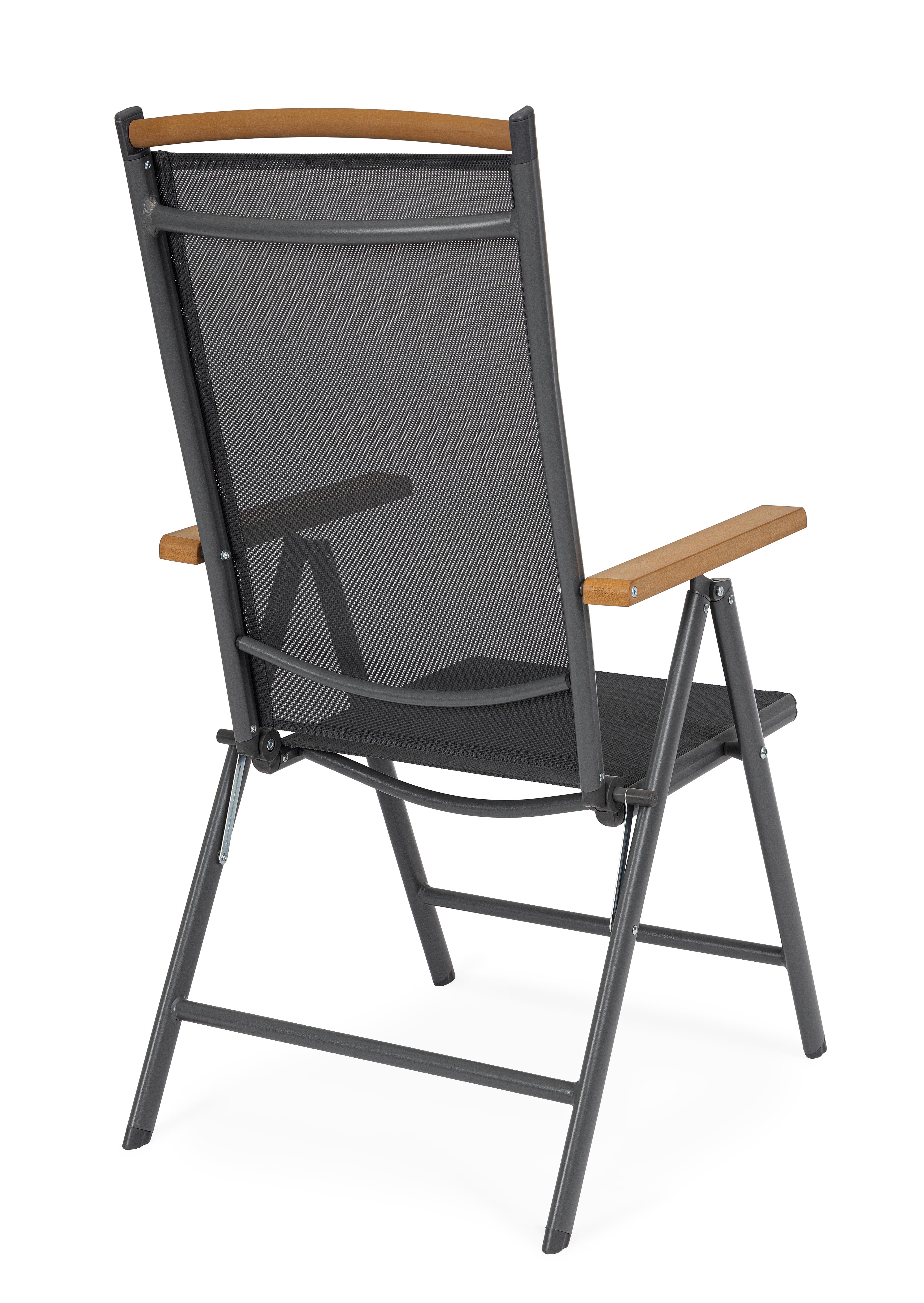 La seduta e lo schienale, realizzati in textilene 2x1, assicurano traspirabilità e comfort anche nelle giornate più calde.