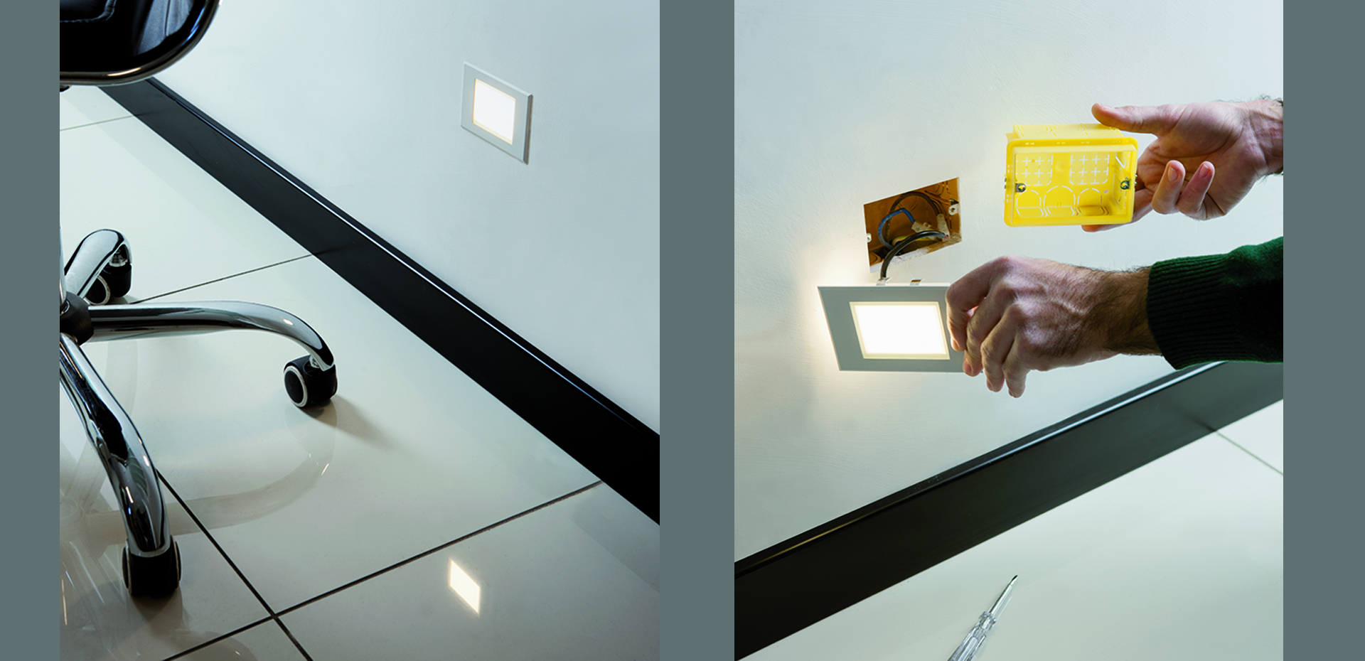 La sua forma compatta e versatile lo rende perfetto per l'installazione in casseformi standard, rendendolo ideale per evidenziare percorsi, scale e vie di fuga.