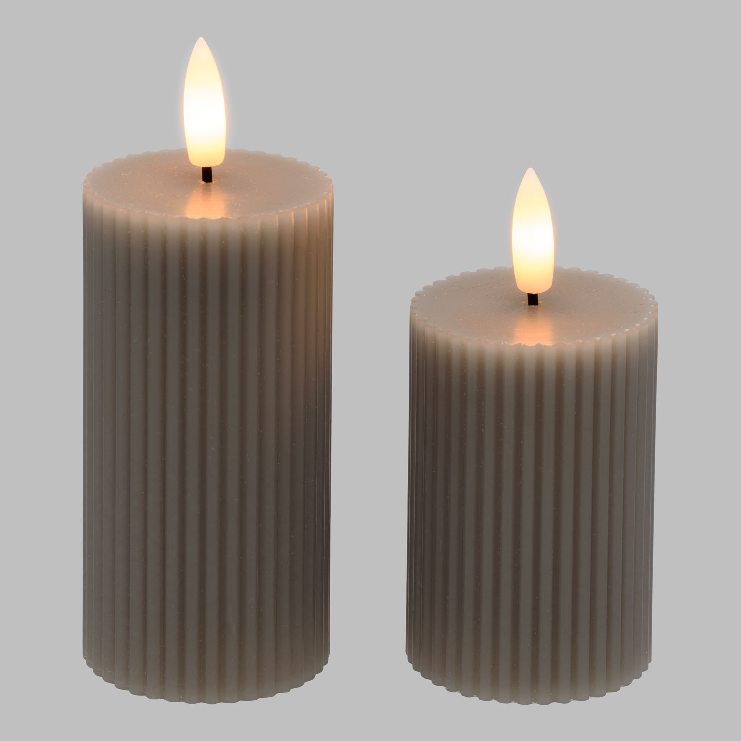 Arricchisci la tua casa con il Set 2 Candele Cilindriche 3D Ribbed in cera Taupe, ideali per creare un’atmosfera calda e accogliente. Realizzate in cera tortora con finitura lucida Glossy, queste candele combinano design classico a coste con la tecnologia moderna LED, offrendo una fiamma 3D realistica con stoppino LED in luce bianco caldo.