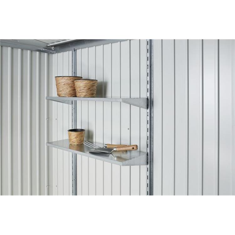 Grazie al processo di zincatura a caldo, i ripiani sono estremamente resistenti alla corrosione e garantiscono una lunga durata nel tempo. Puoi posizionarli dove preferisci, sfruttando al massimo lo spazio disponibile all'interno della tua casetta.