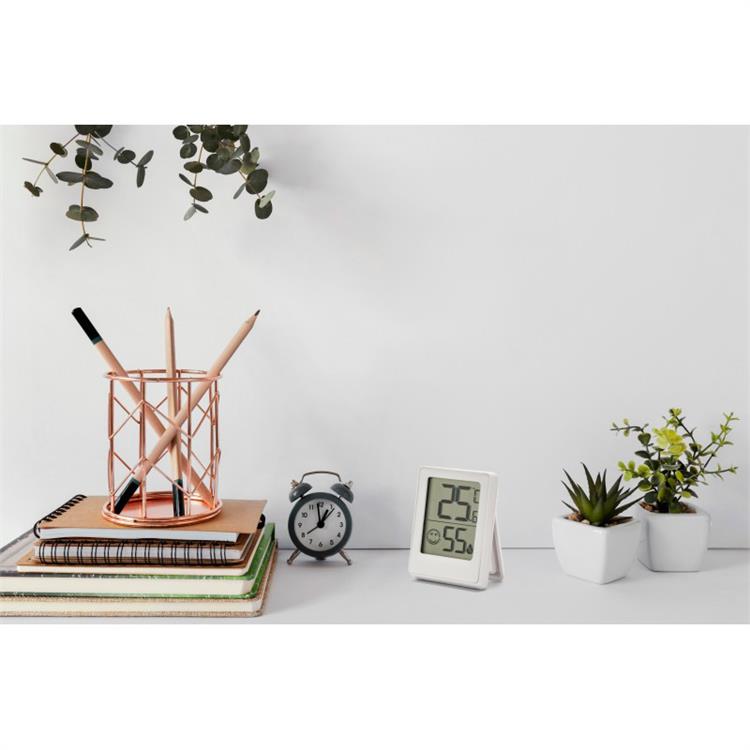 Velamp Square+ non è solo un semplice strumento per misurare la temperatura. Questo dispositivo compatto e funzionale si presenta come una vera e propria stazione meteo digitale, un punto di riferimento discreto ed elegante per il tuo ambiente domestico o lavorativo. La sua tecnologia di misurazione avanzata fornisce letture precise di temperatura e umidità, dati essenziali per mantenere un clima interno ideale. La cura per il design, con il suo profilo ridotto e le linee pulite, lo rende un complemento d'arredo che si integra in ogni contesto, da una scrivania moderna a una mensola in salotto. Grazie al suo display digitale con caratteri grandi e ben leggibili, consultare le informazioni è un'operazione rapida e senza sforzo. Il termometro digitale per ambienti integrato assieme al sensore di umidità offre un monitoraggio costante del comfort, rappresentato anche da un indicatore intuitivo che ti aiuta a capire a colpo d'occhio se l'aria è troppo secca o umida. La sua versatilità d'uso ti permette di posizionarlo dove preferisci: puoi appoggiarlo su qualsiasi superficie grazie al suo comodo supporto orientabile, oppure trasformarlo in una stazione meteo digitale da parete utilizzando il foro per l'apposizione a muro. Il Velamp Square+ è pronto all'uso appena estratto dalla confezione, eliminando la necessità di complicate installazioni o configurazioni.