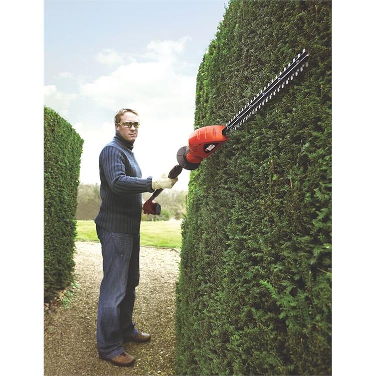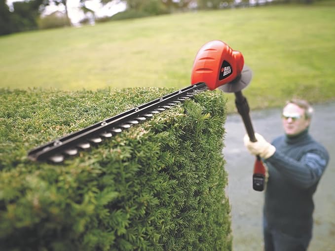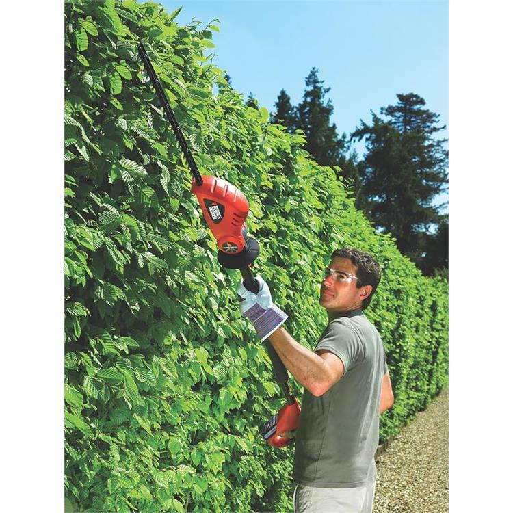 La testa orientabile su 5 posizioni fino a 180° permette di adattarsi a qualsiasi condizione di taglio, mentre l’asta estensibile raggiunge i 2 metri di altezza, consentendo di lavorare comodamente su siepi fino a 3.5 metri. Questo rende questo potatore elettrico il prodotto più rapido ed efficace per tagliare le siepi più alte.
