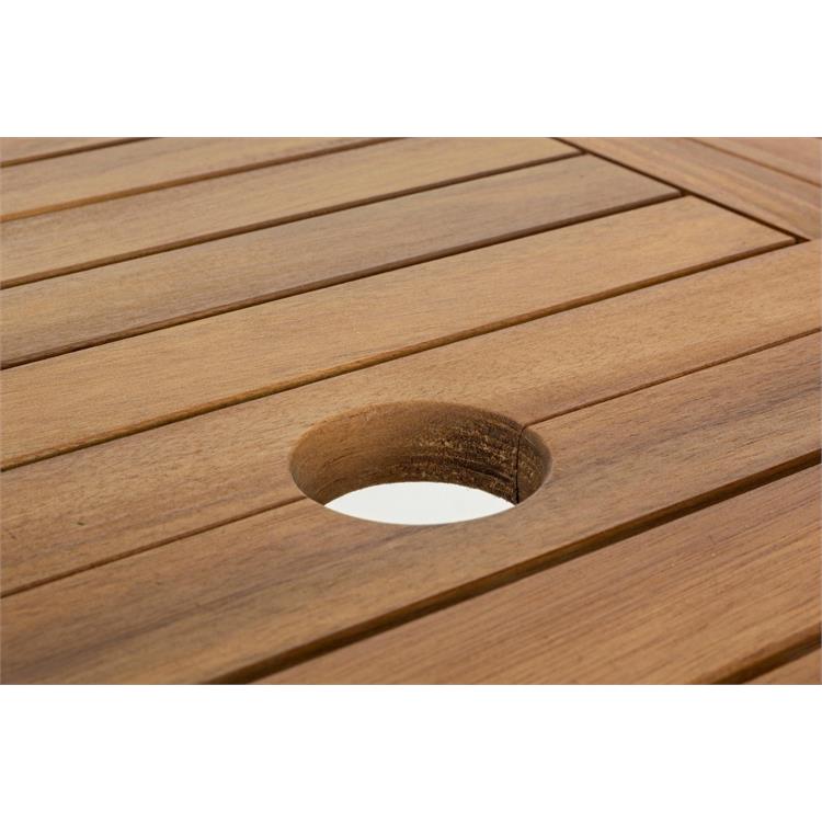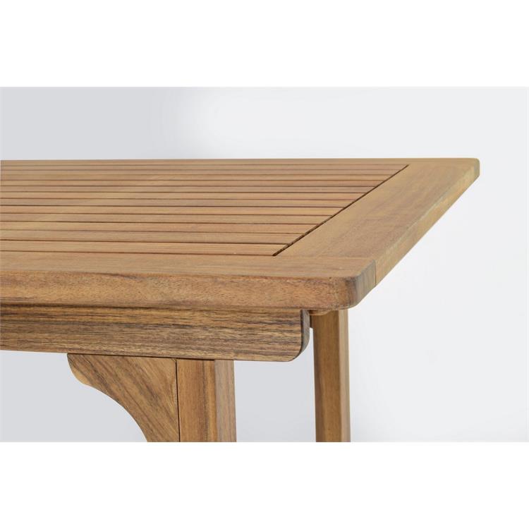 La struttura in legno di acacia con finitura ad olio conferisce al tavolo un aspetto caldo e naturale, perfetto per qualsiasi tipo di ambiente esterno. Il legno di acacia è noto per la sua resistenza e durabilità, ma per preservarne l'aspetto originale nel tempo, si consiglia di trattarlo con un apposito olio per esterni almeno una volta all'anno. Ricorda che il legno è un materiale vivo che cambia e si stabilizza con il tempo: eventuali irregolarità della superficie e nodi sono caratteristiche tipiche e non influiscono sulla durabilità del prodotto.