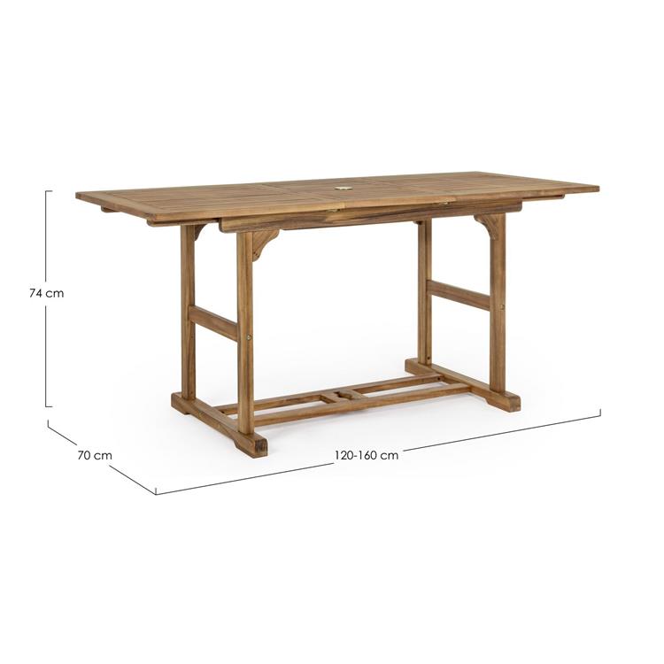 TAVOLO DA GIARDINO ALLUNGABILE RETTANGOLARE IN LEGNO BIZZOTTO NOEMI 120-160X70CM