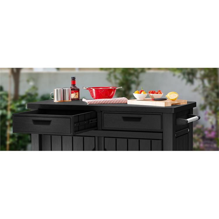 - Doppio cassetto: Per riporre in modo ordinato gli accessori da barbecue, le stoviglie o altri oggetti.