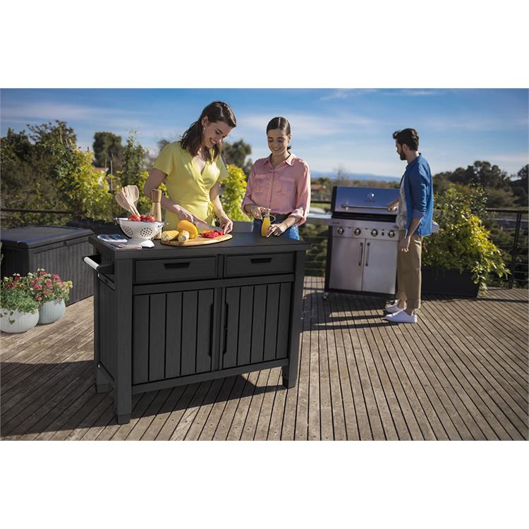 TAVOLO PER BARBECUE KETER UNITY XL CON CASSETTI GRAFITE