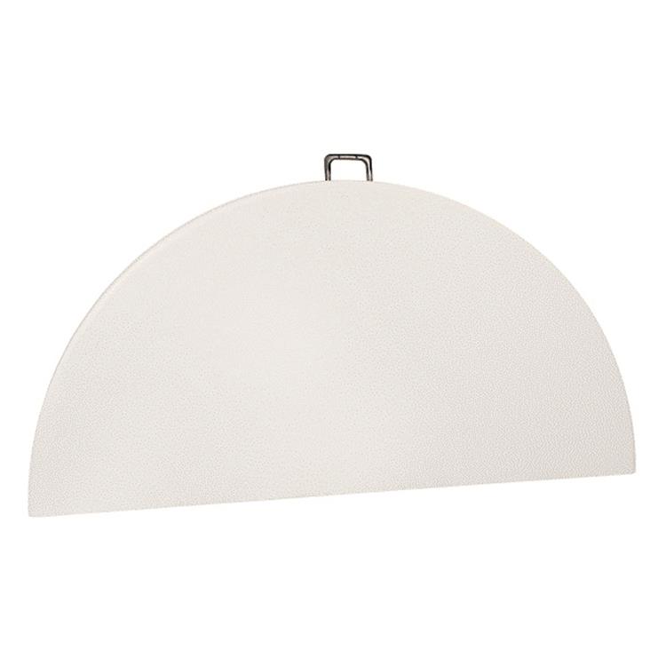 Il tavolo è dotato di gambe pieghevoli che ti permettono di ripiegarlo e trasportarlo con facilità, grazie anche alla maniglia in tessuto con impugnatura. Di colore bianco, questo tavolo è anche richiudibile su sé stesso.