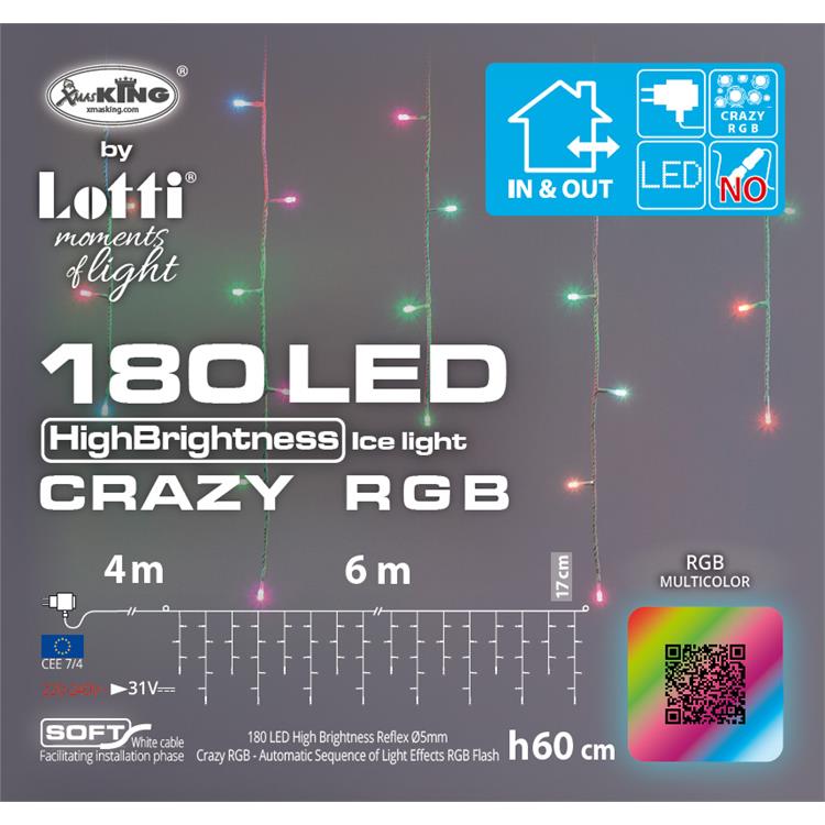 Realizzata con materiali di alta qualità e dotata di certificazione IP44, la tenda luminosa Ice Light CRAZY RGB è resistente agli agenti atmosferici e può essere utilizzata sia all'interno che all'esterno. Il cavo soft bianco si integra perfettamente con qualsiasi tipo di arredamento, mentre i LED a basso consumo energetico garantiscono una lunga durata.