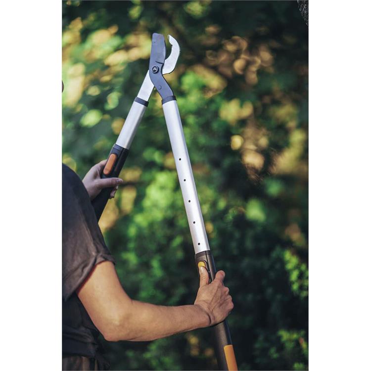 Il tagliarami Fiskars SmartFit L86 grazie al suo sistema telescopico con manici che si estendono da 66,5 cm fino a 91,5 cm, garantisce una portata sufficiente per raggiungere rami alti senza sforzi per la schiena, basta estendere le braccia.