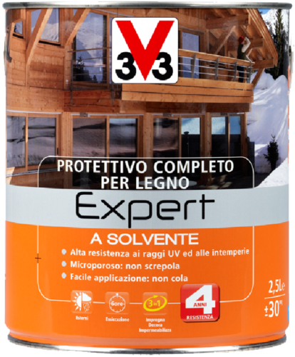 Il protettivo completo V33 Expert PROTEZIONE CLASSICA è perfetto per preservare e valorizzare la bellezza del legno. A base di resine alchidiche, questo prodotto è appositamente formulato per proteggere e decorare i rivestimenti in legno sia interni che esterni, come persiane, cancelli, recinzioni, serramenti, finestre, travi e gazebo.