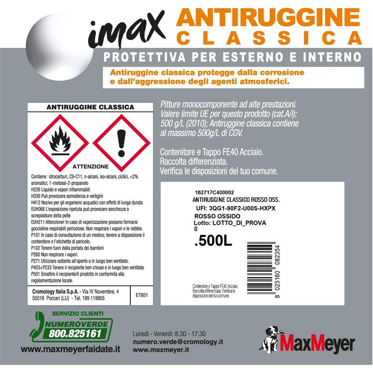 VERNICE ANTIRUGGINE CLASSICA PER FERRO E GHISA - ROSSO OSSIDO - MAXMEYER - 0,5 LT