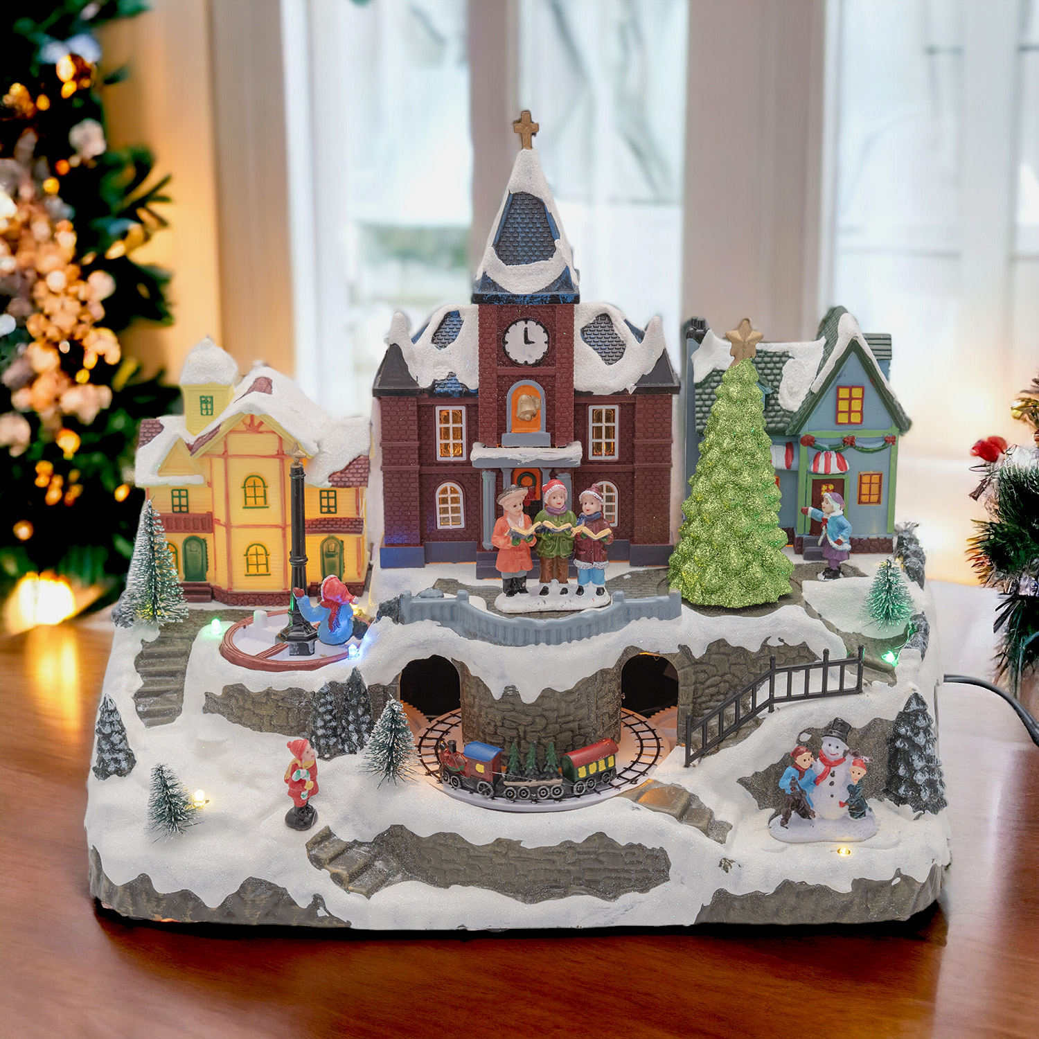- Paesaggio innevato con Chiesa, Trenino, Albero di Natale e Giostra per Bambini