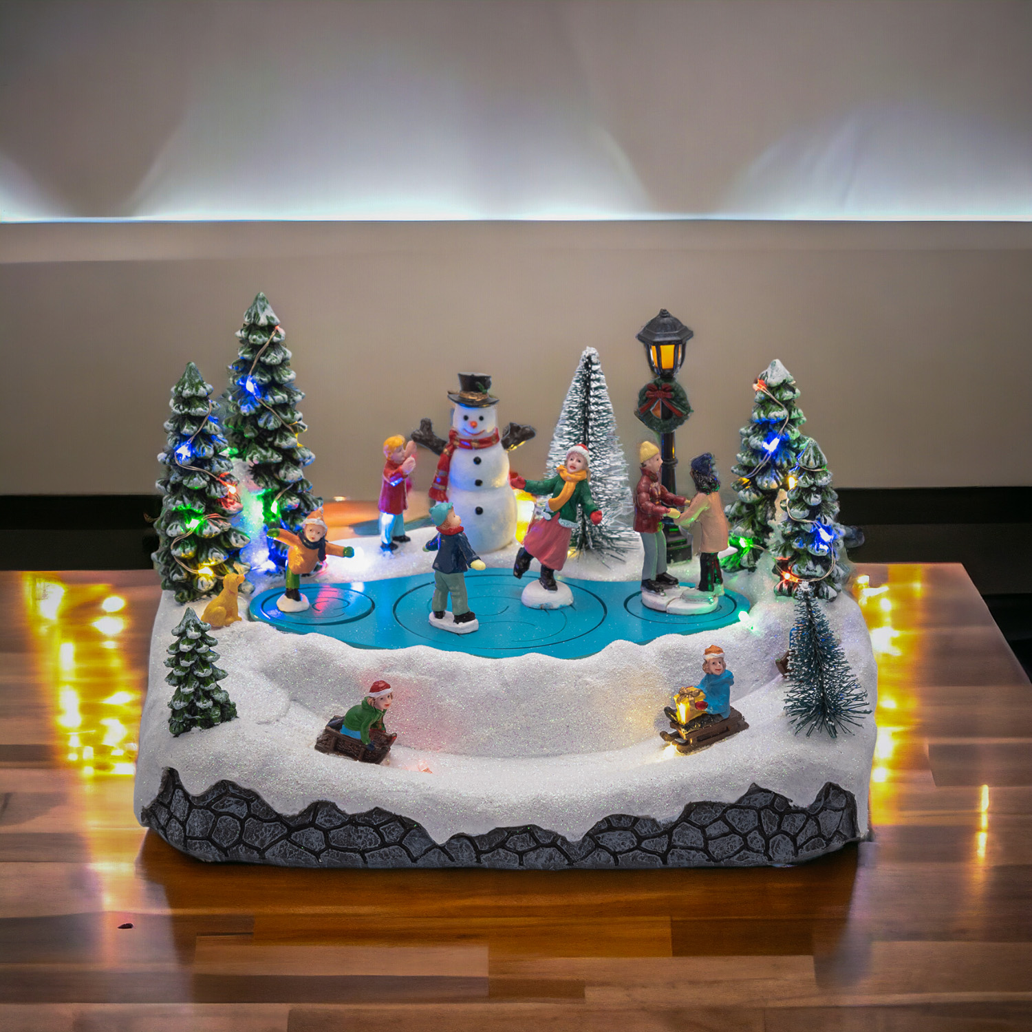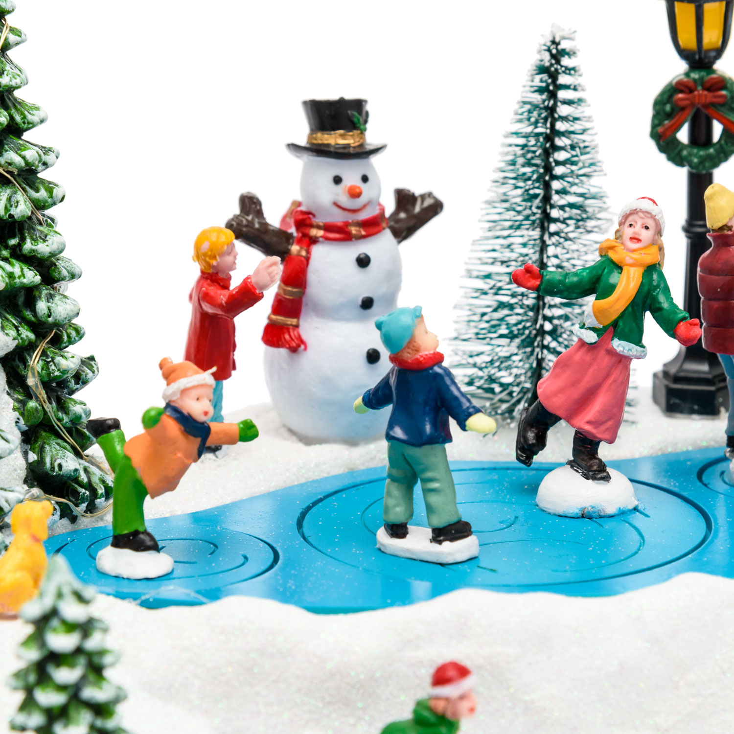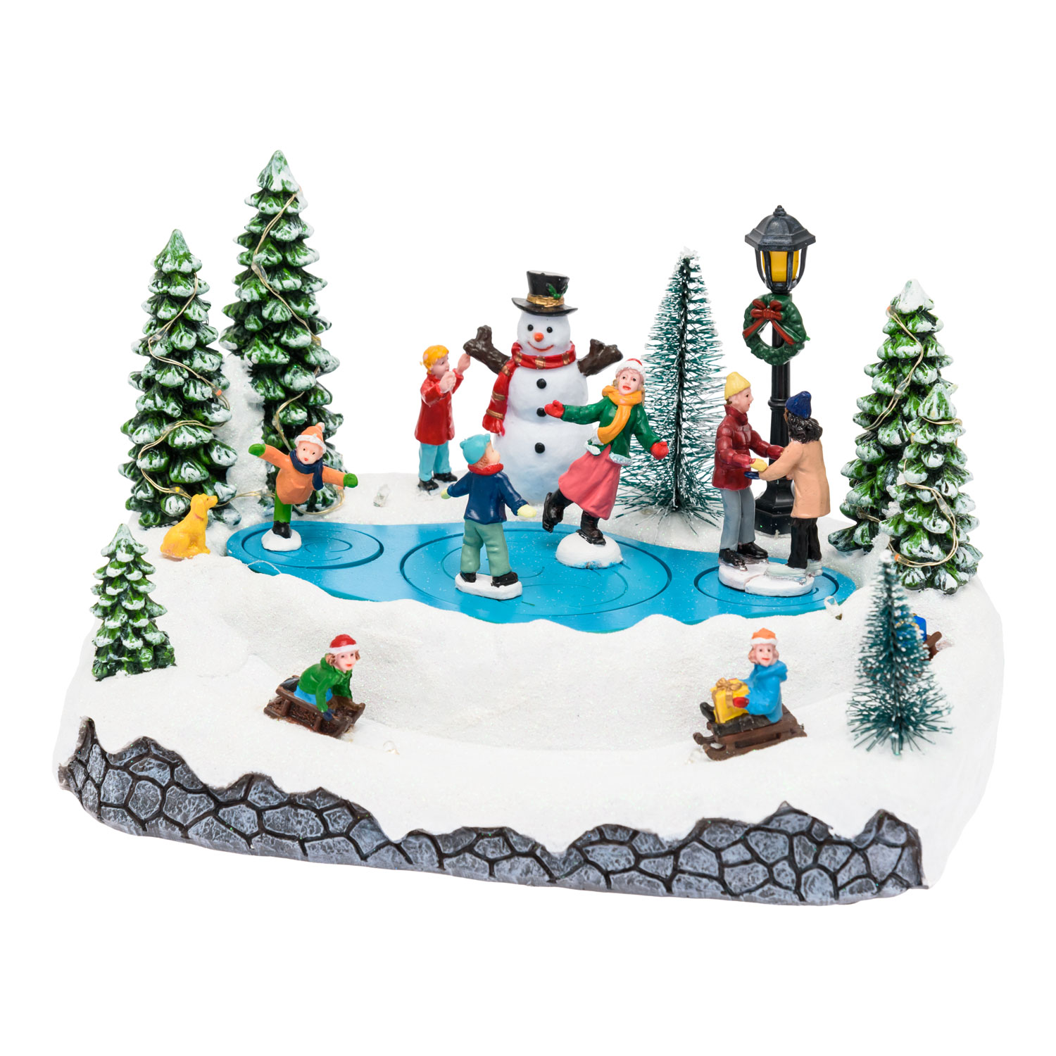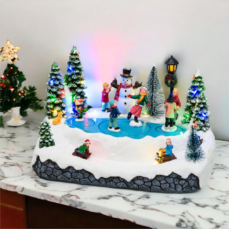 Questo villaggio natalizio Lotti è dotato di pattinatori con movimento rotante, LED colorati e musica integrata, creando un effetto realistico e suggestivo per il tuo albero o la decorazione natalizia della casa.