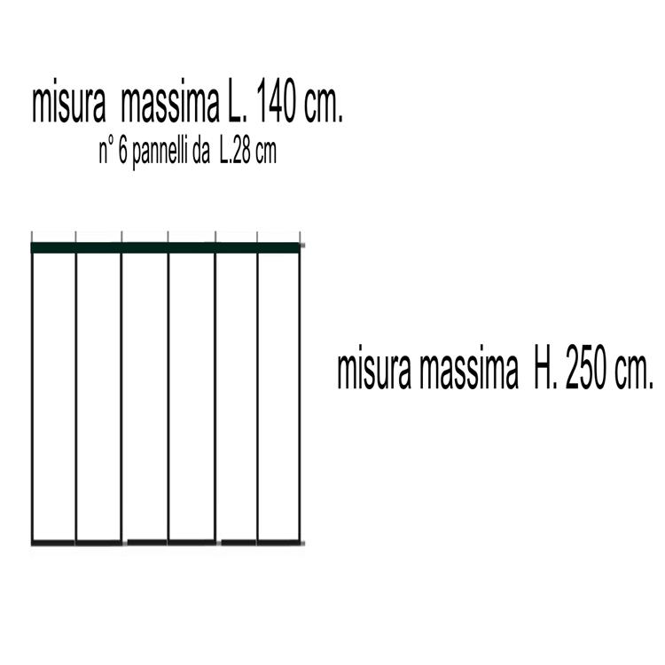 balconi. E' formata da 6 pannelli di 28x250 cm che si sovrappongono tra loro per coprire dimensioni fino a