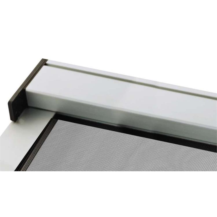 La struttura in alluminio verniciato e il cassonetto quadrato da 40 mm conferiscono alla zanzariera un design gradevole e moderno. La rete in fibra di vetro ricoperta di PVC grigio è resistente e offre un'ottima visibilità.