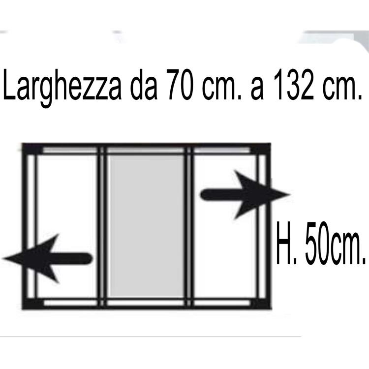 70x50 cm e aperto di 132x50 cm, è una soluzione mobile e duratura che si inserisce direttamente nelle guide della tapparella esterna senza richiedere modifiche alla struttura esistente.